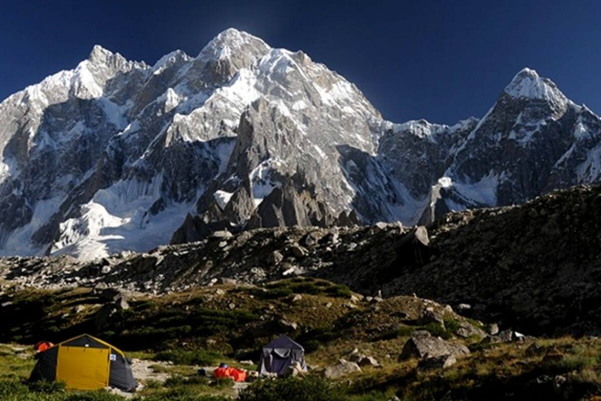 → The approach is through Haramosh Valley. Base camps are often set up near Sassi or Kutwal valley depending on route.