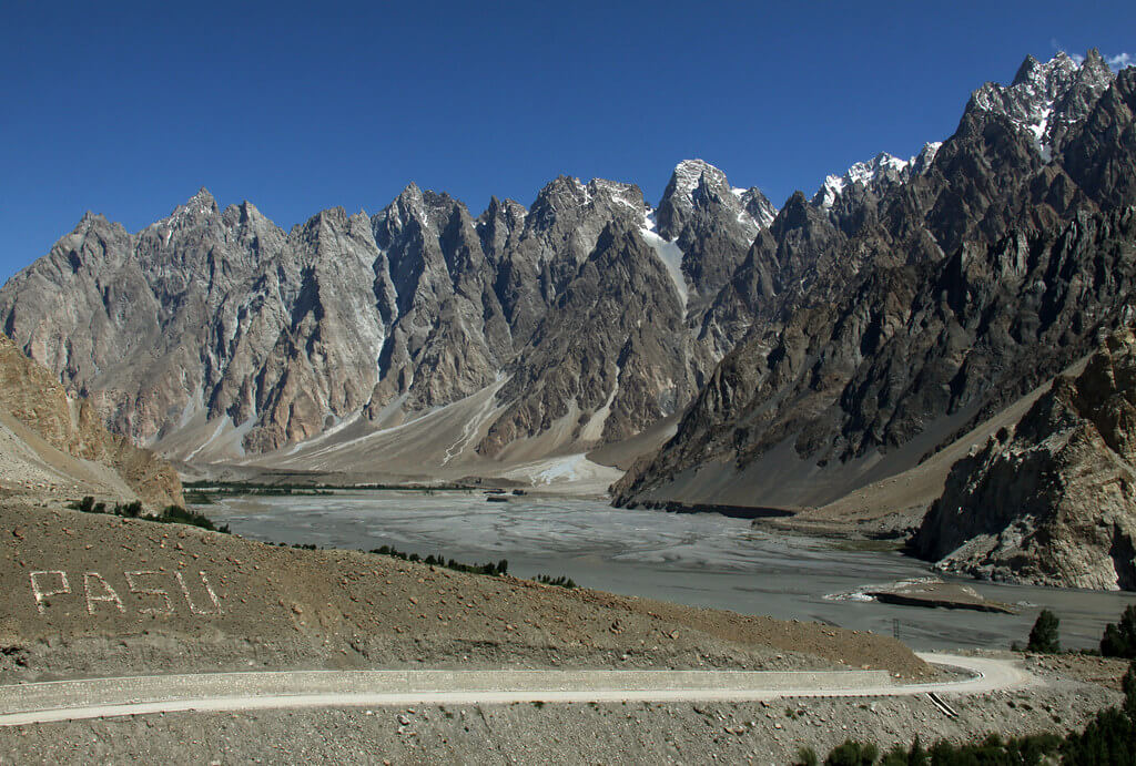 Stop at viewpoints along the highway near Passu, where the peaks can be framed with the Hunza River and valley scenery.